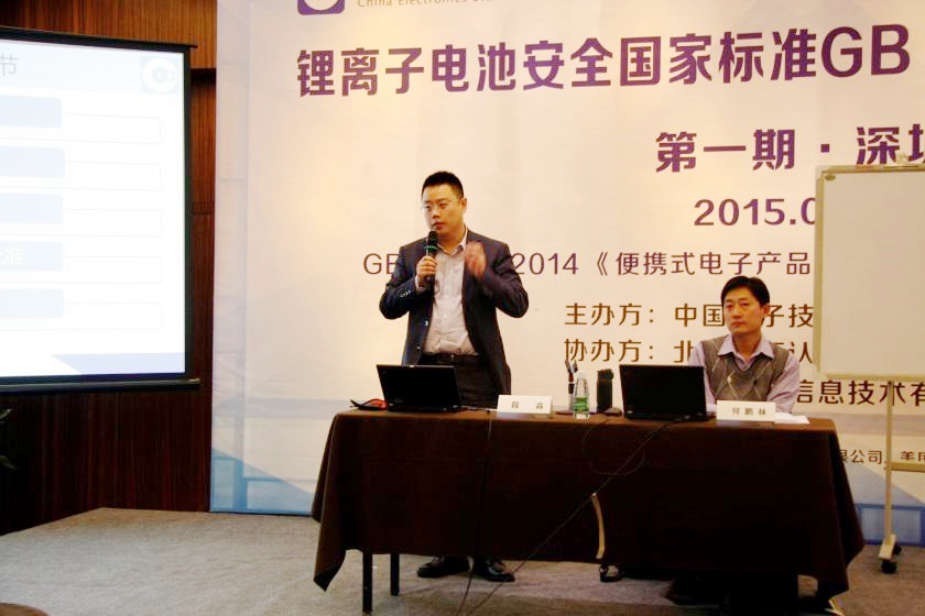 发证仪式后,由GB 31241标准的第一起草人、中国电子技术标准化研究院的锂电池专家何鹏林副主任对标准内容进行了详解,并由北京赛西认证有限责任公司段淼副总经理对《便携式电子产品用锂离子电池和电池组安全认证实施规则》和《便携式移动电源安全认证实施规则》进行了解读。