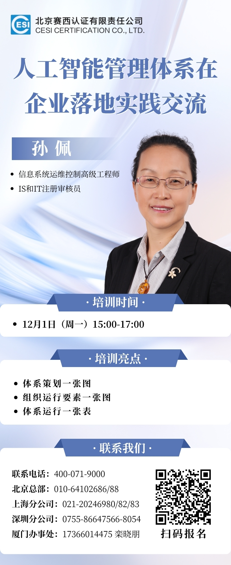 关于举办“人工智能管理体系在企业落地实践交流”公益培训的通知