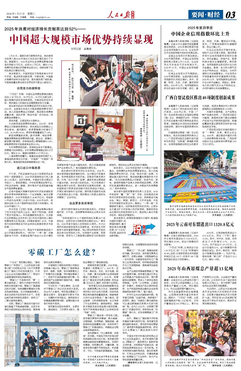 2026年1月26日、27日,新华社、人民日报海外版连续刊登中国电子技术标准化研究院(以下简称“电子标准院”)关于零碳工厂解读文章,这标志着电子标准院在零碳工厂标准化、规范化建设方面的思路与成果,获得了国家级权威媒体的高度关注与认可。为您分享全文如下: